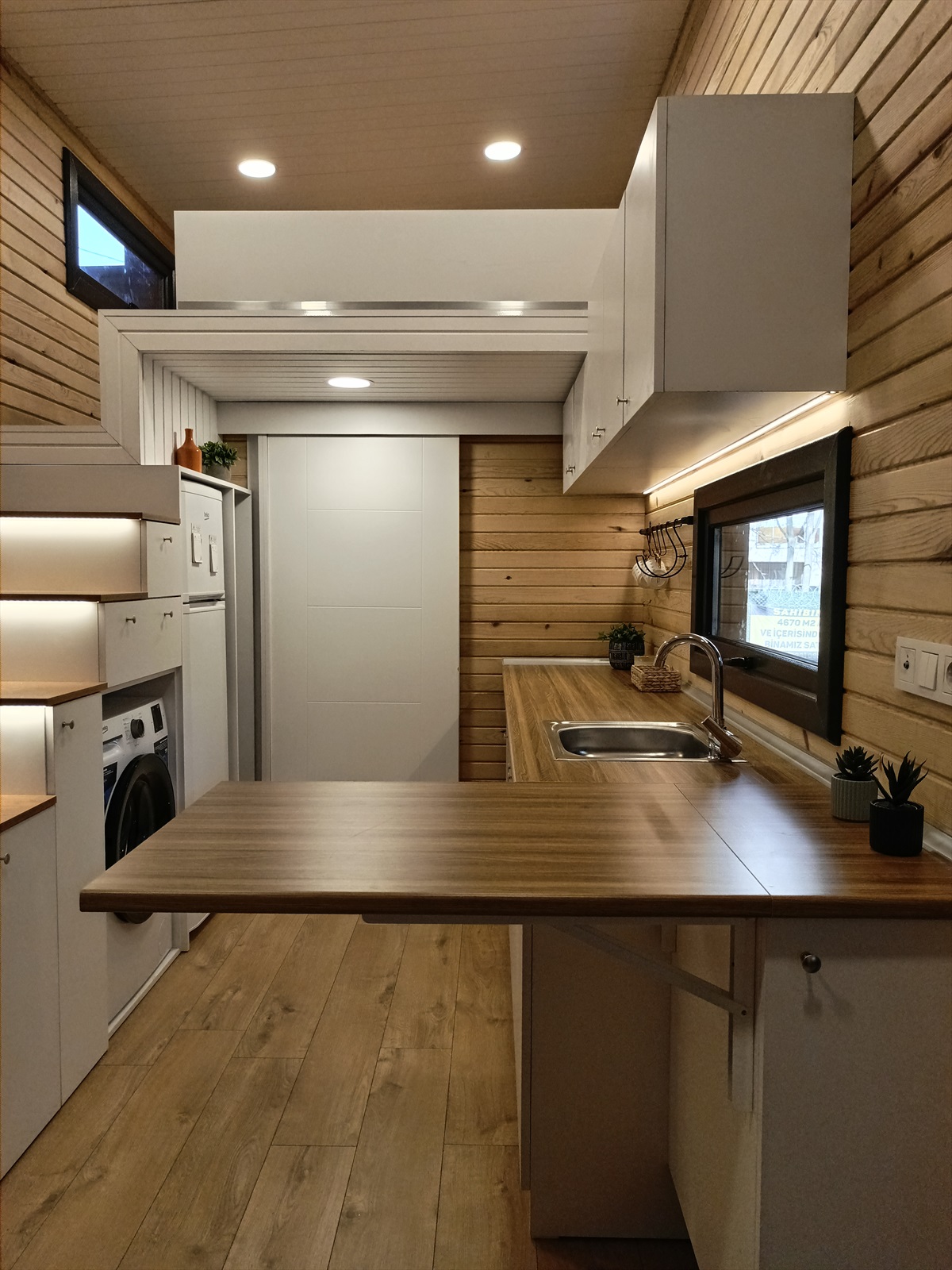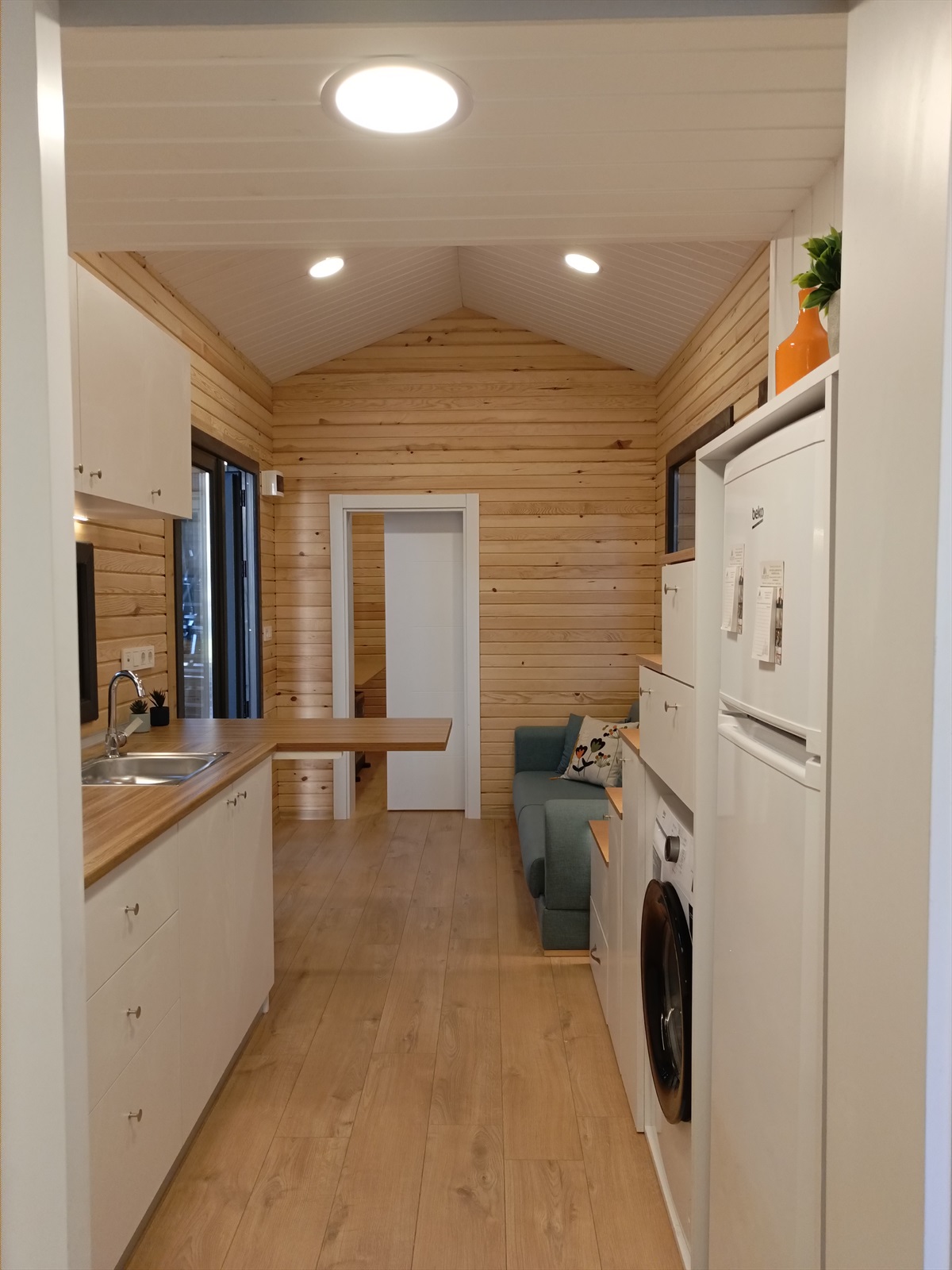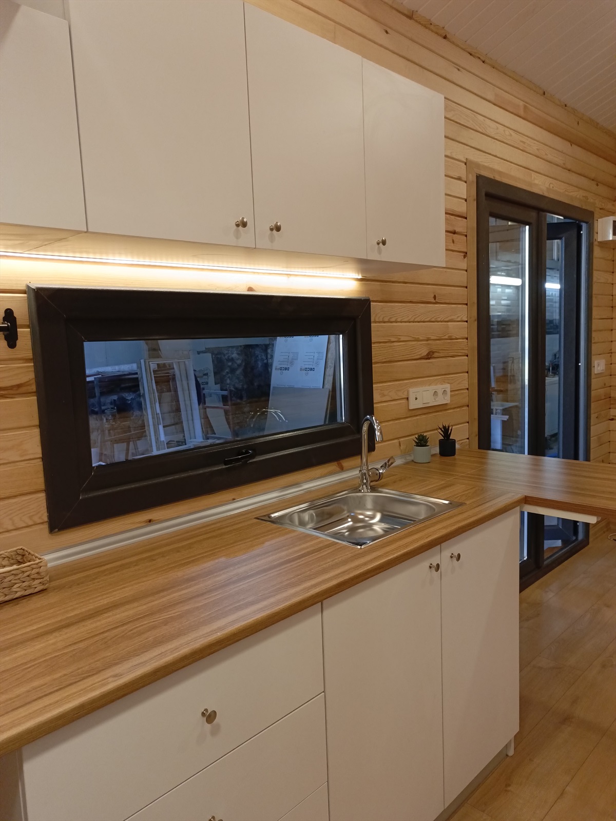 • Dış kaplama : Thermowood Çam ve izolasyonlu tek kat trapez sac panel