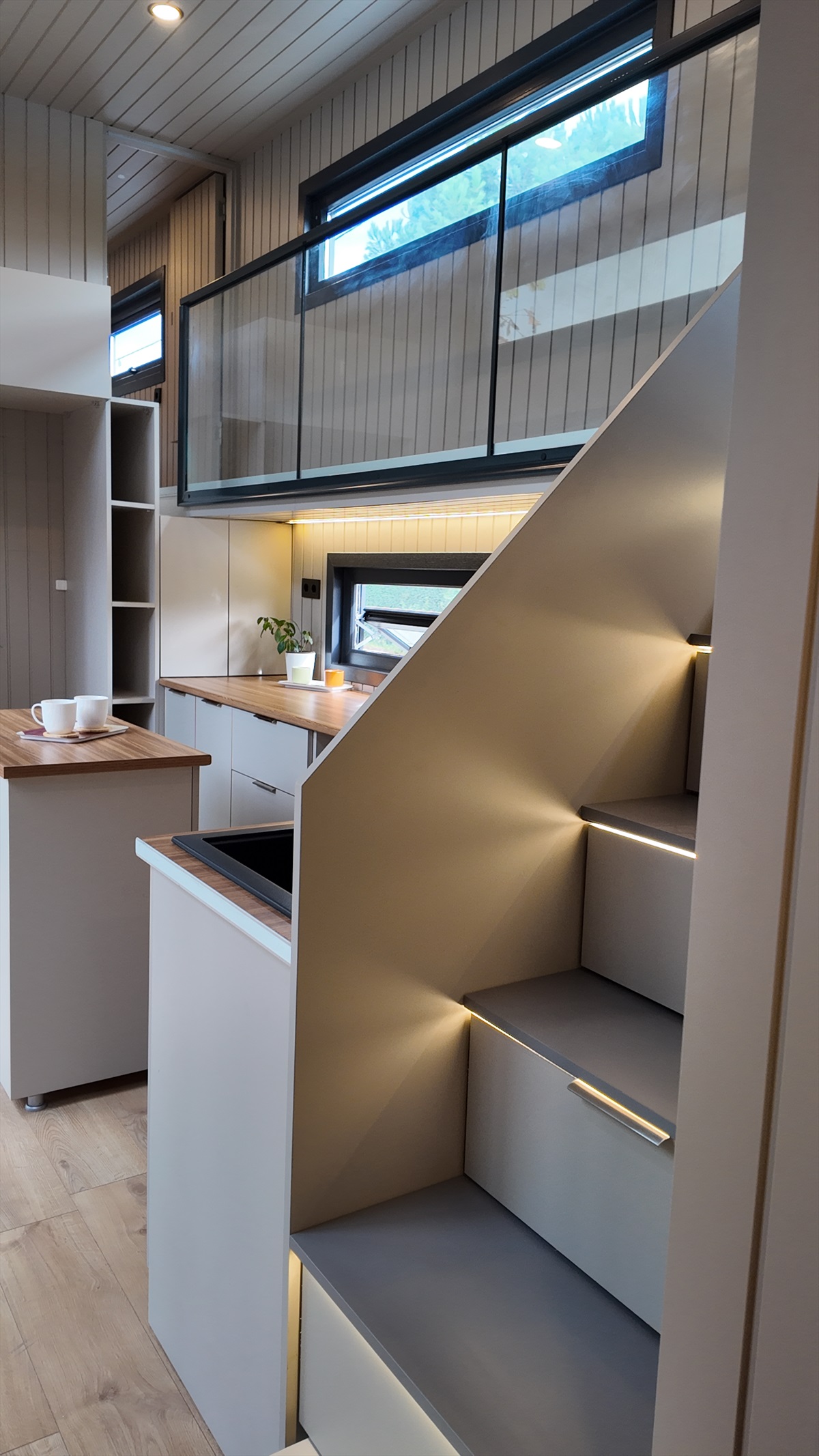 • Mutfak, banyo, merdiven altı depolama ve yatak odası dolapları gövde MDF lam, kapaklar soft mat Evogloss