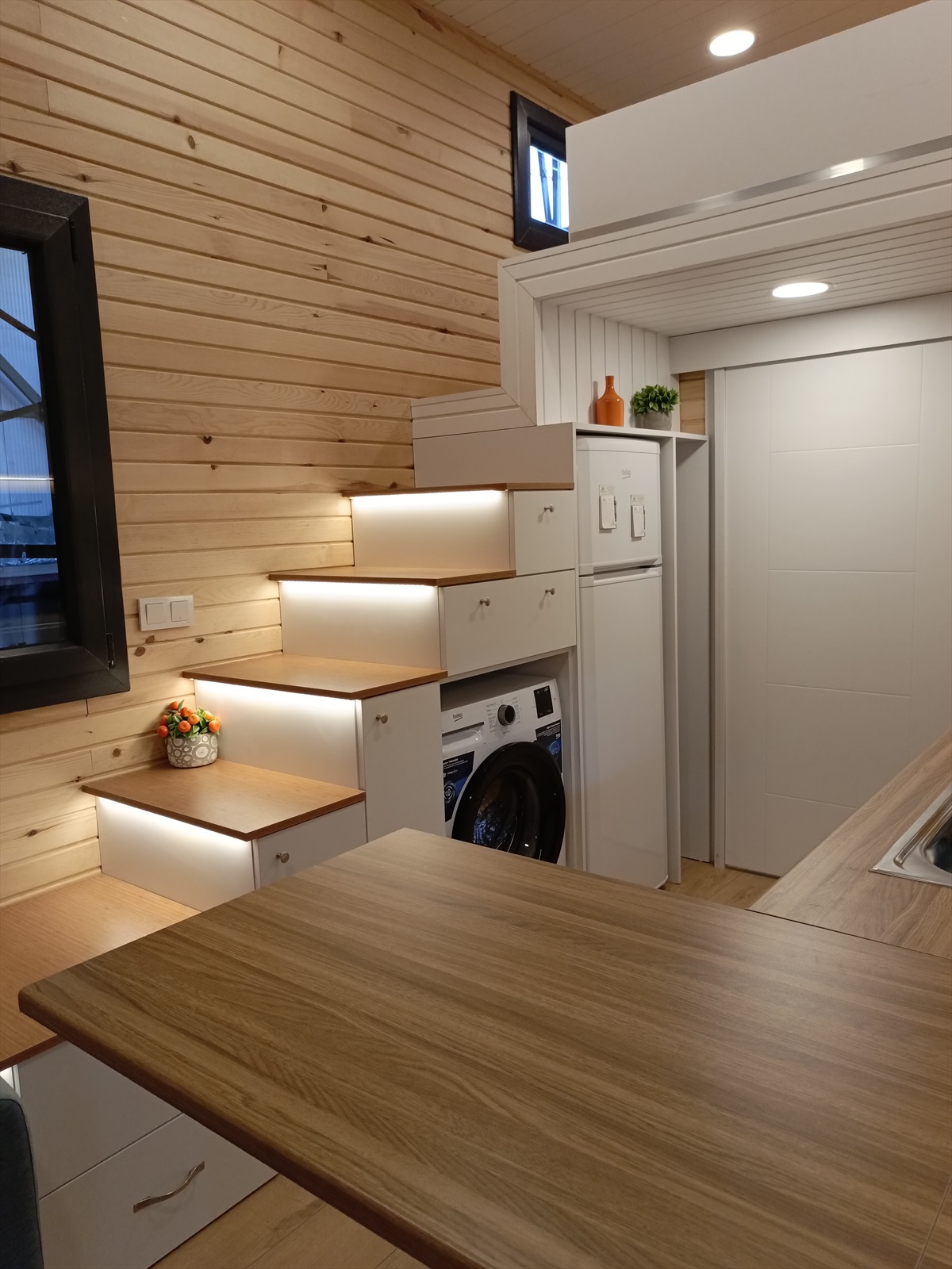 • Mutfak, banyo, merdiven altı depolama ve yatak odası dolapları gövde MDF lam, kapaklar soft mat Evogloss