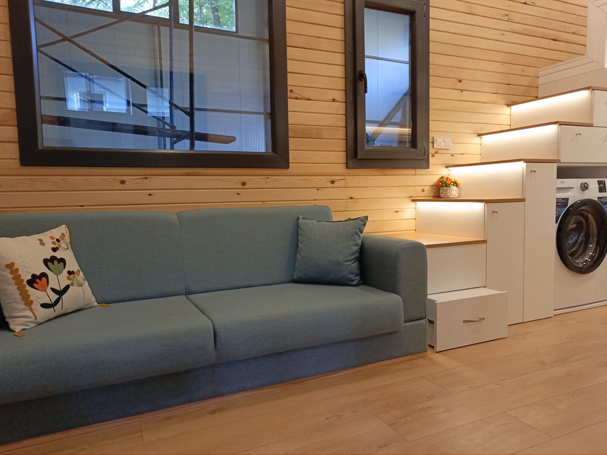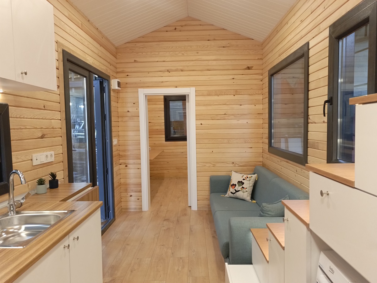 • Dış kaplama : Thermowood Çam ve izolasyonlu tek kat trapez sac panel