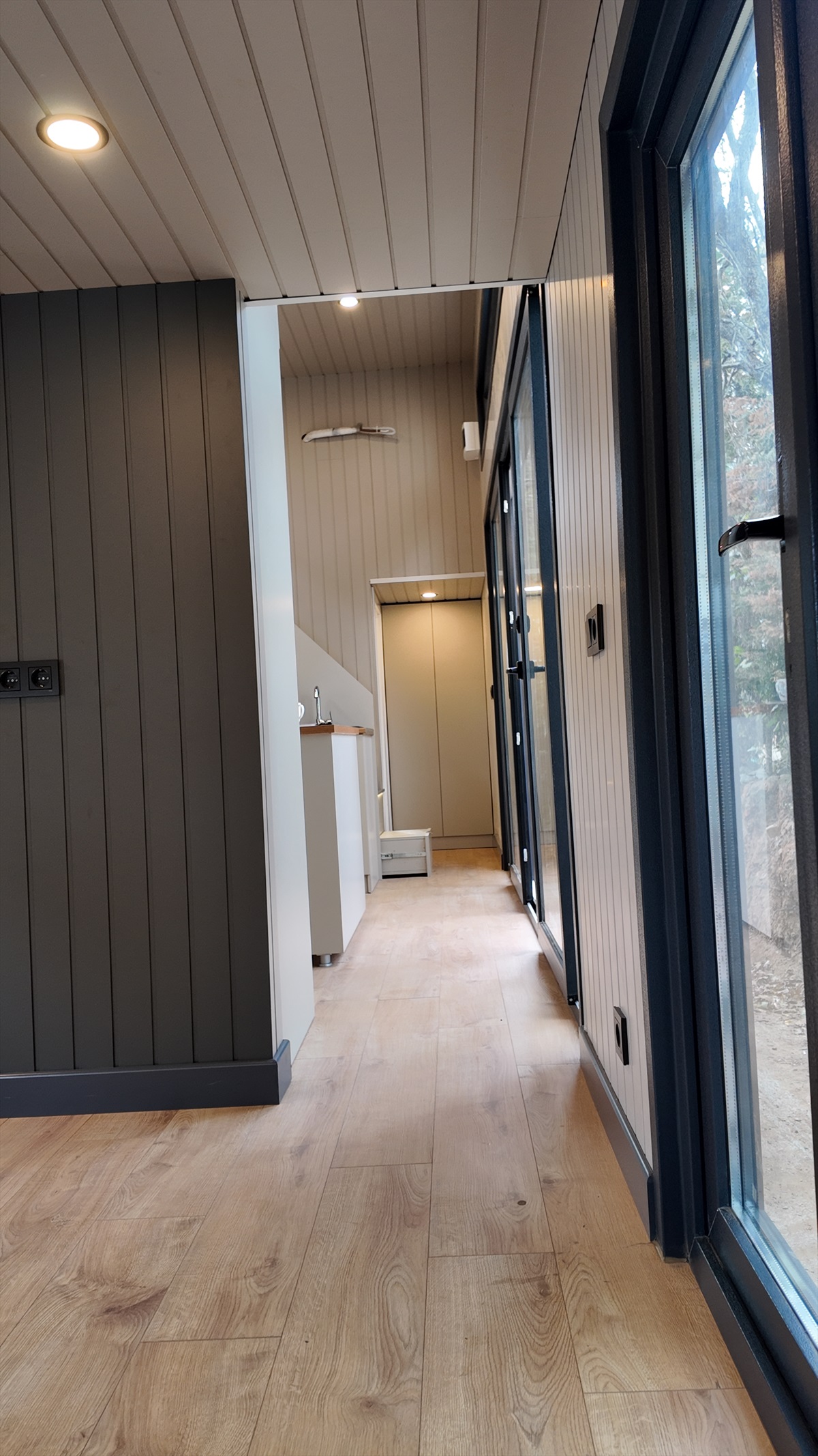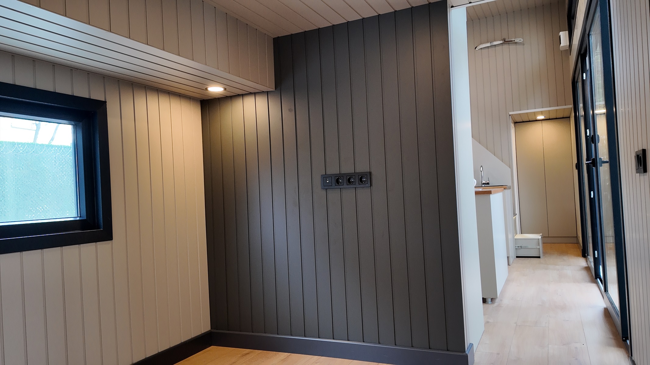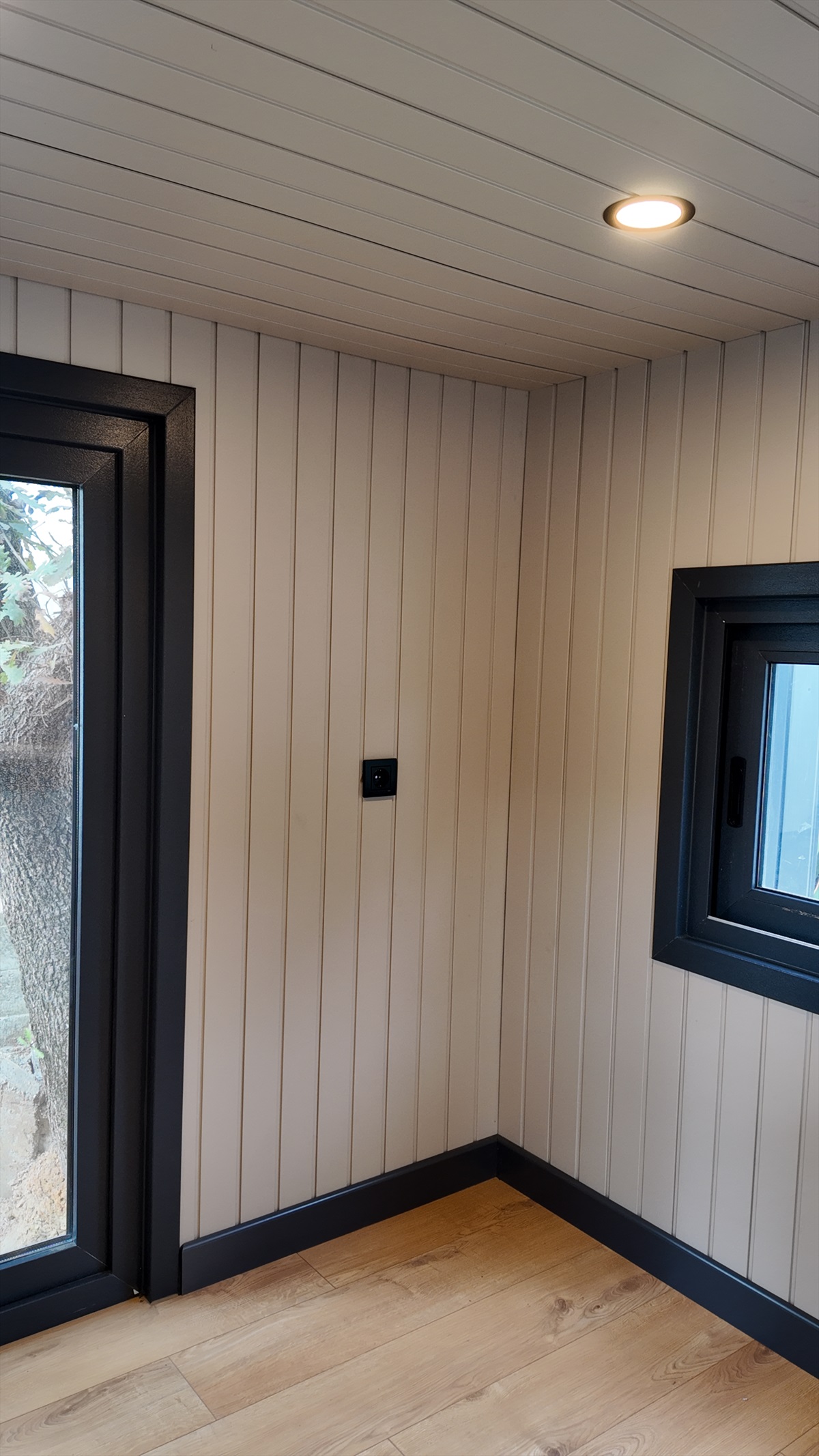 • Dış kaplama : Thermowood Çam ve izolasyonlu tek kat trapez sac panel