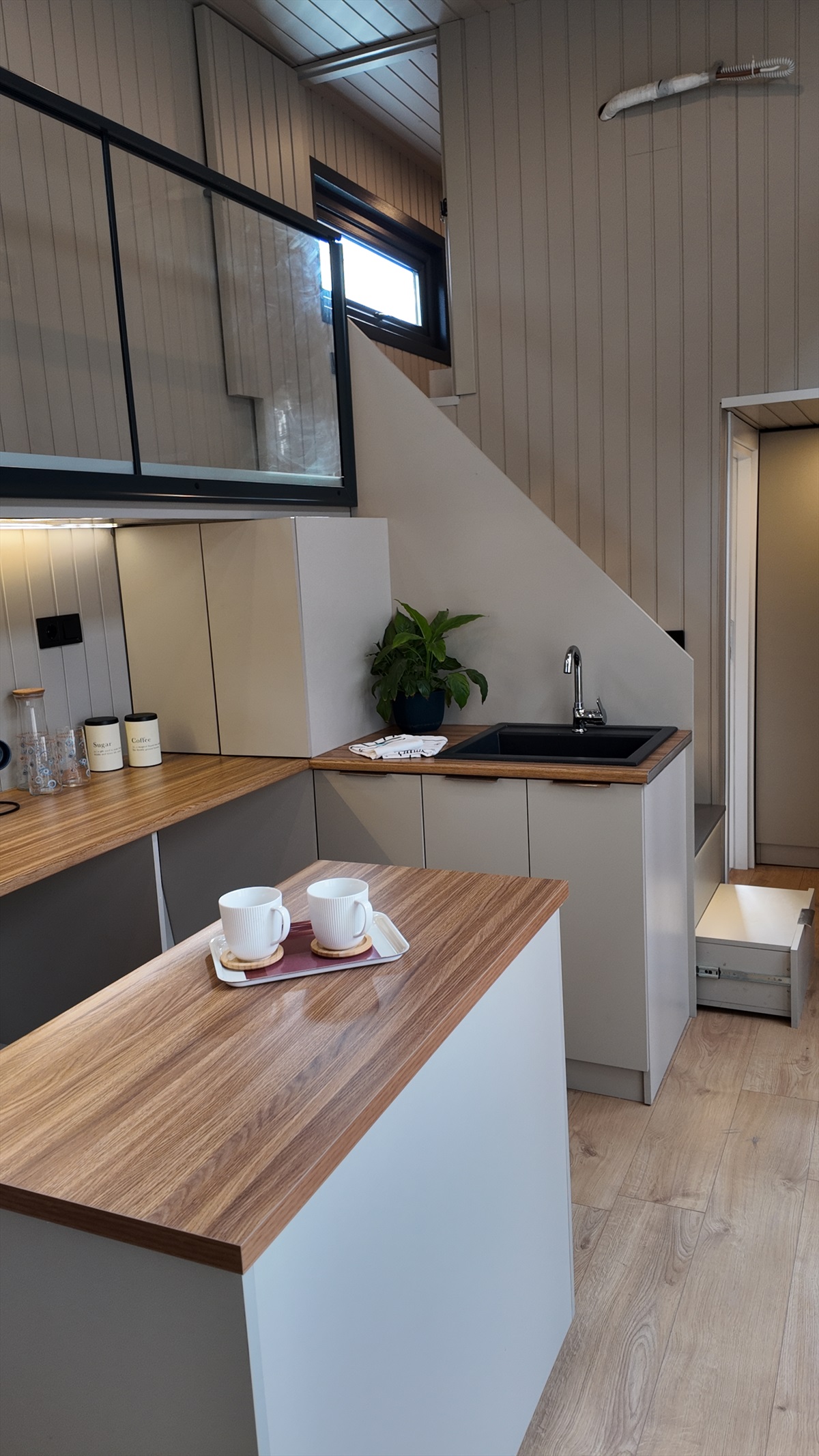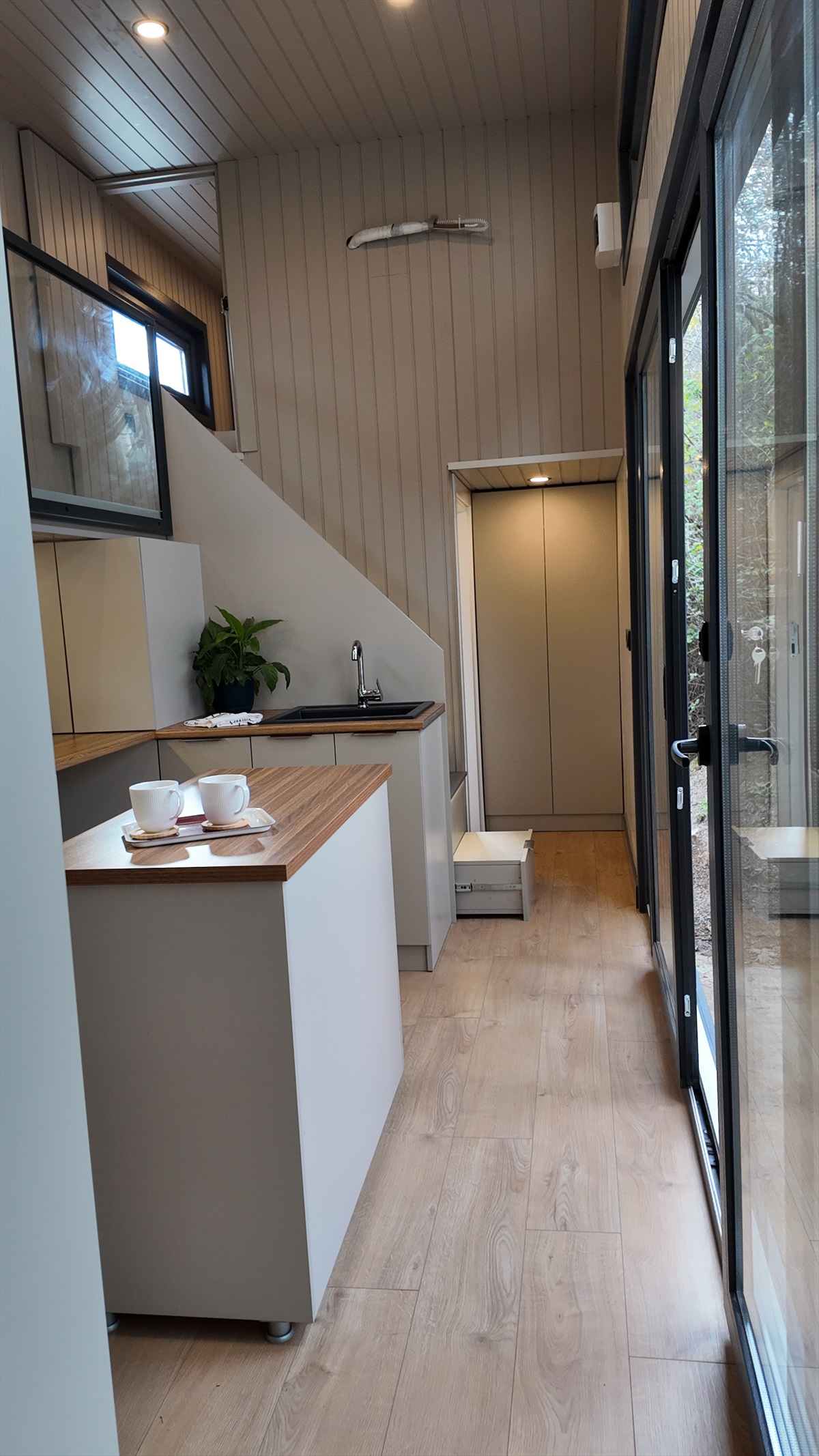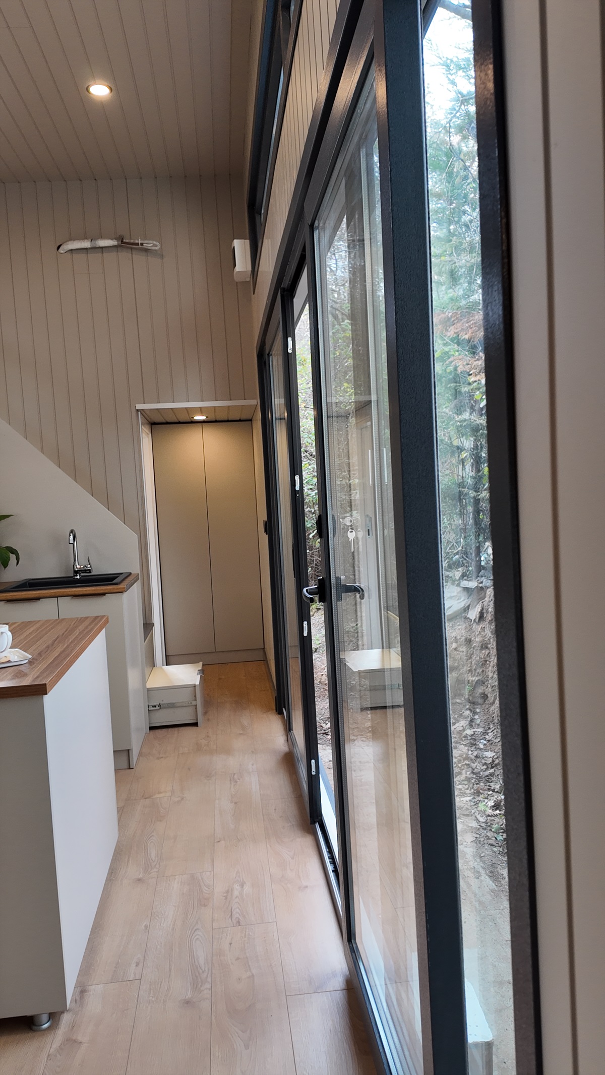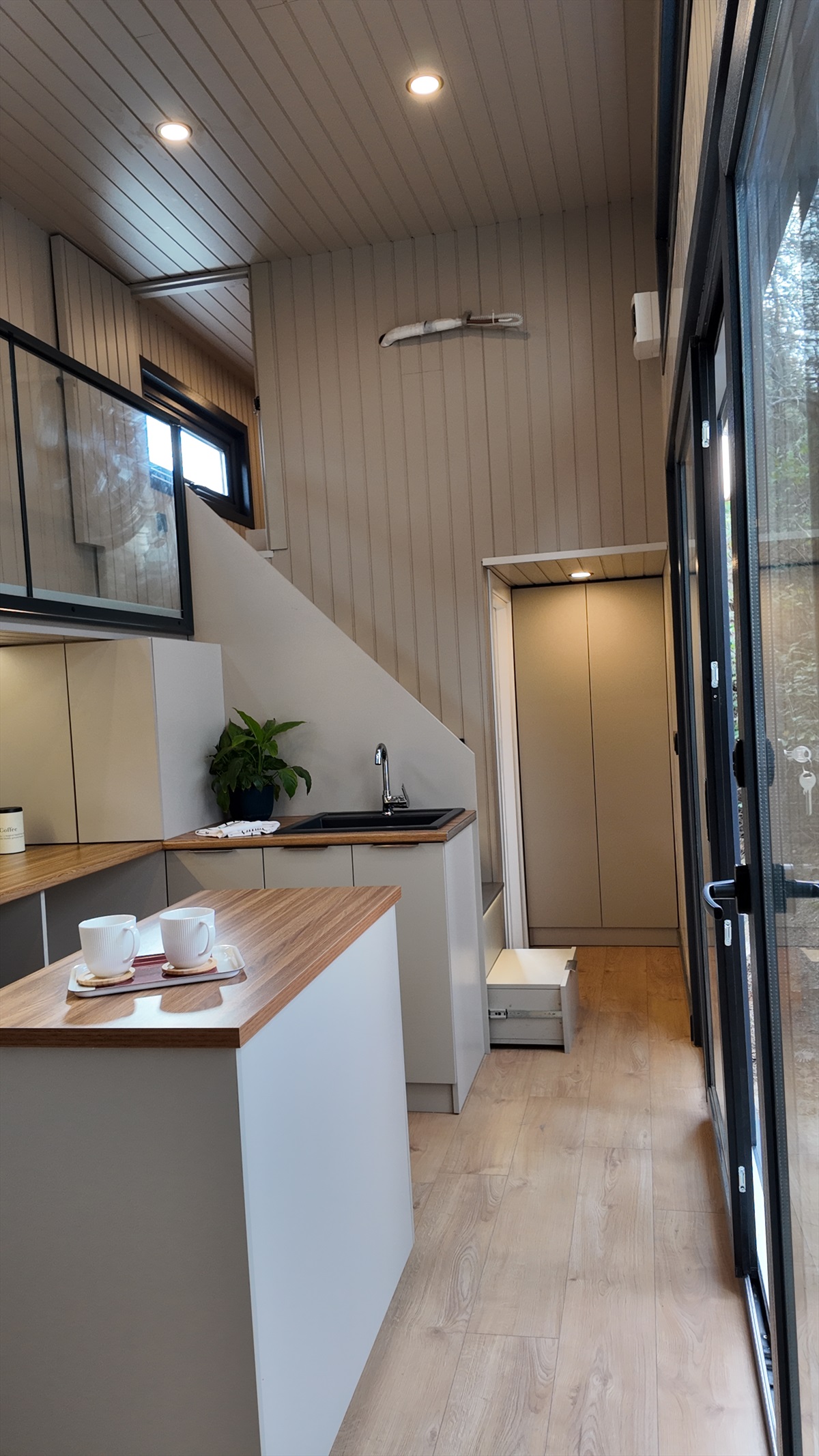• Dış kaplama : Thermowood Çam ve izolasyonlu tek kat trapez sac panel