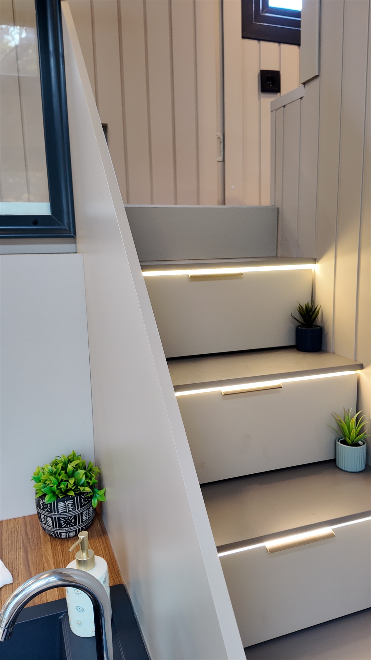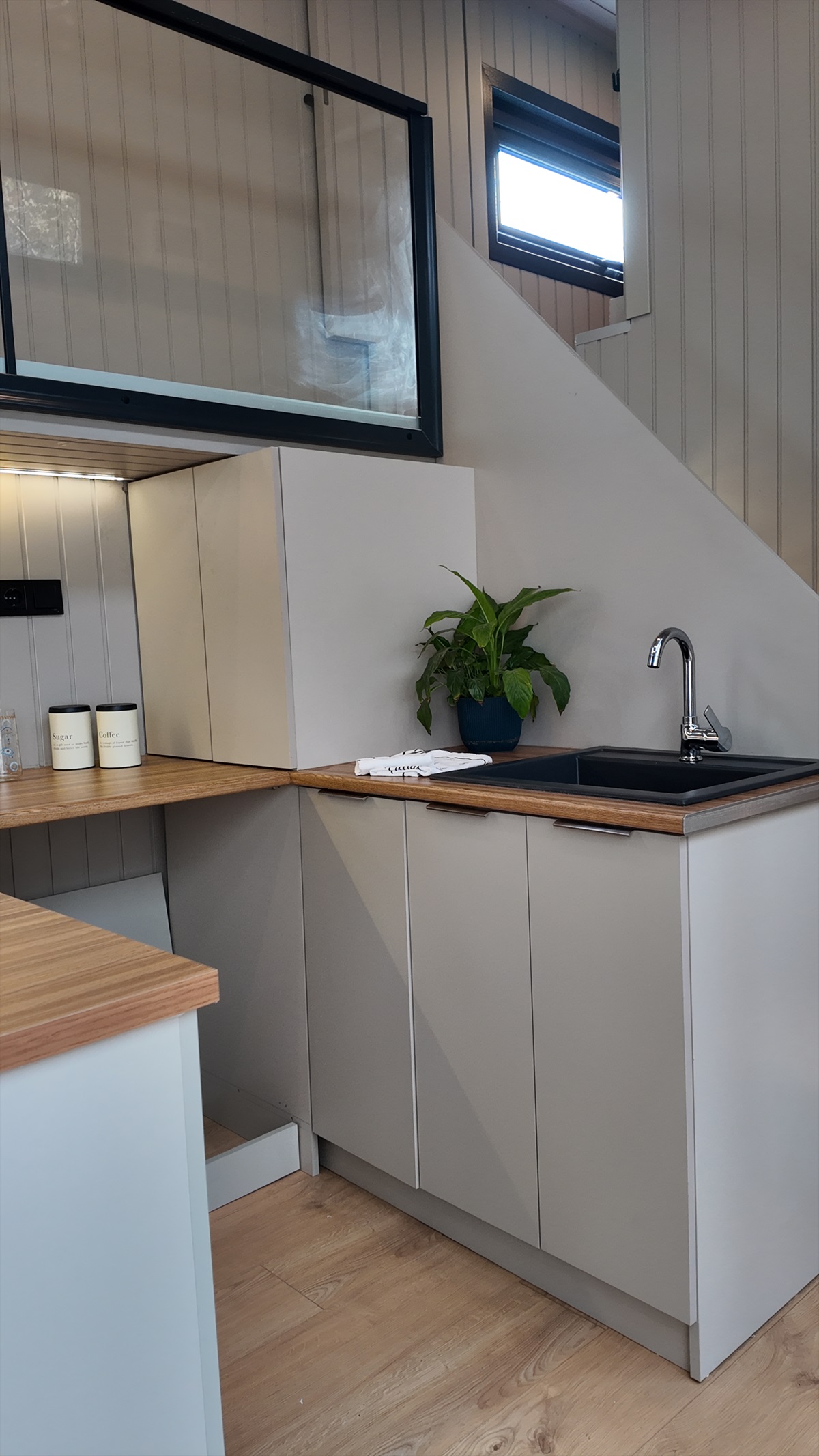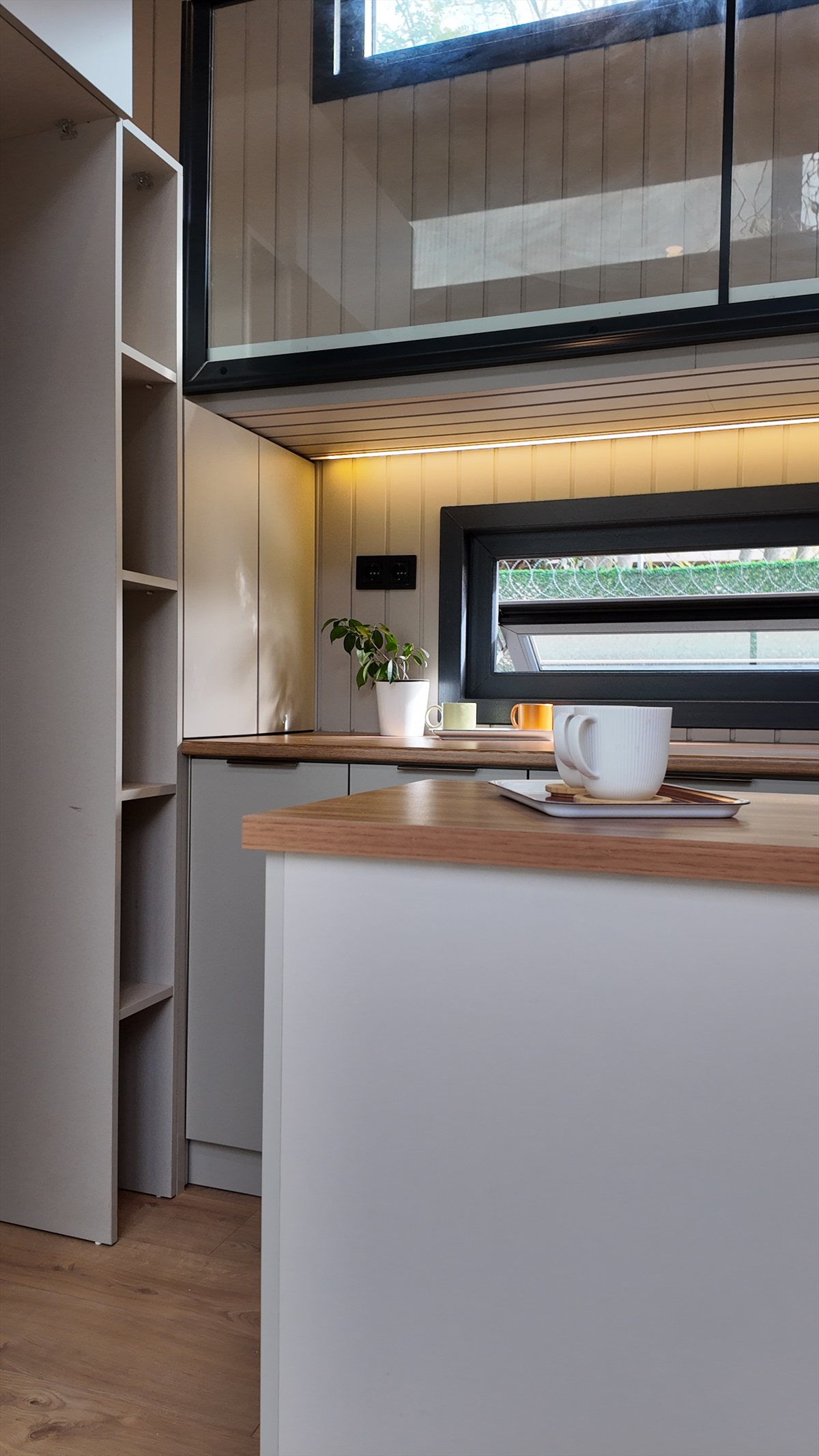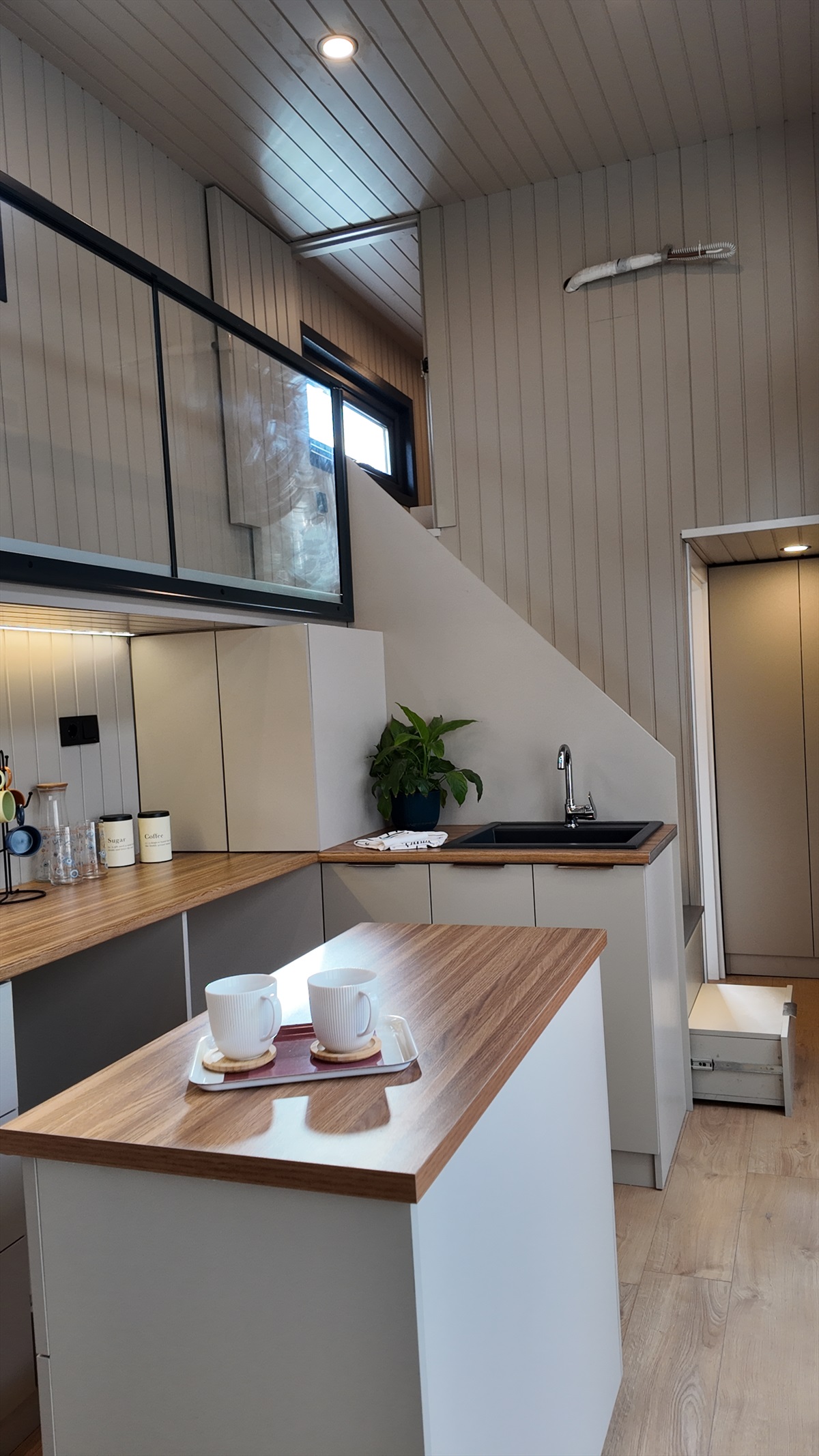 • Mutfak, banyo, merdiven altı depolama ve yatak odası dolapları gövde MDF lam, kapaklar soft mat Evogloss